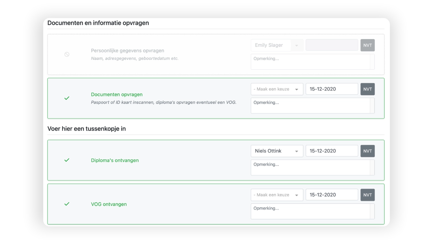 Onboarding, taken en voortgang per medewerker