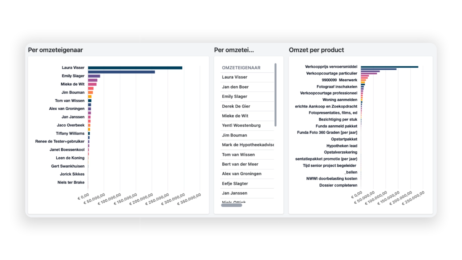 Ja. Met één druk op de knop vergelijk je omzet, conversies en doorlooptijden per vestiging of regio. Zo zie je snel waar kansen liggen.