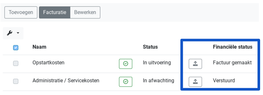 Bij nieuwe processen zorgt de module Ordering en Overzicht ervoor dat je een dienst direct kunt factureren vanuit het project. Hierbij is nu ook direct inzicht in de financiële status van een dienst en kun je gelijk doorklikken naar de desbetreffende factuur.