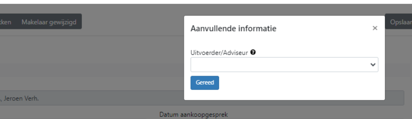 Om het proces makkelijker te maken komt er nu bij het wijzigen van de makelaar een pop-up scherm omhoog, waarin je de nieuwe makelaar kunt selecteren. Het veld in het formulier wordt hierdoor automatisch aangepast!